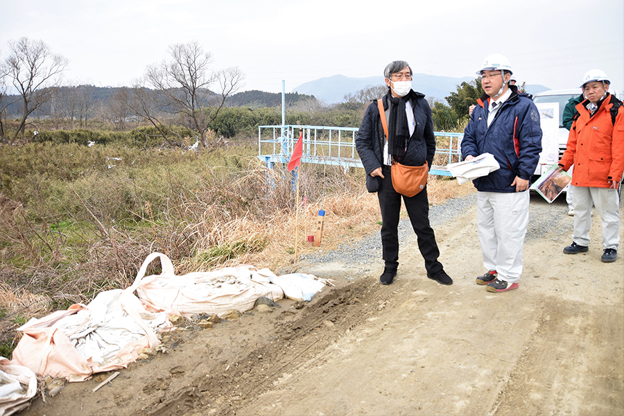 長林氏らは初めに、夏井川の決壊箇所のうち、小川町と平下平窪の4カ所を確認した後、平字梅本の県いわき合同庁舎に会場を移し、堤防の復旧工法などを話し合った。いわき市では東日本台風によって、支流も含む夏井川が決壊・氾濫し、8人が犠牲になっている。