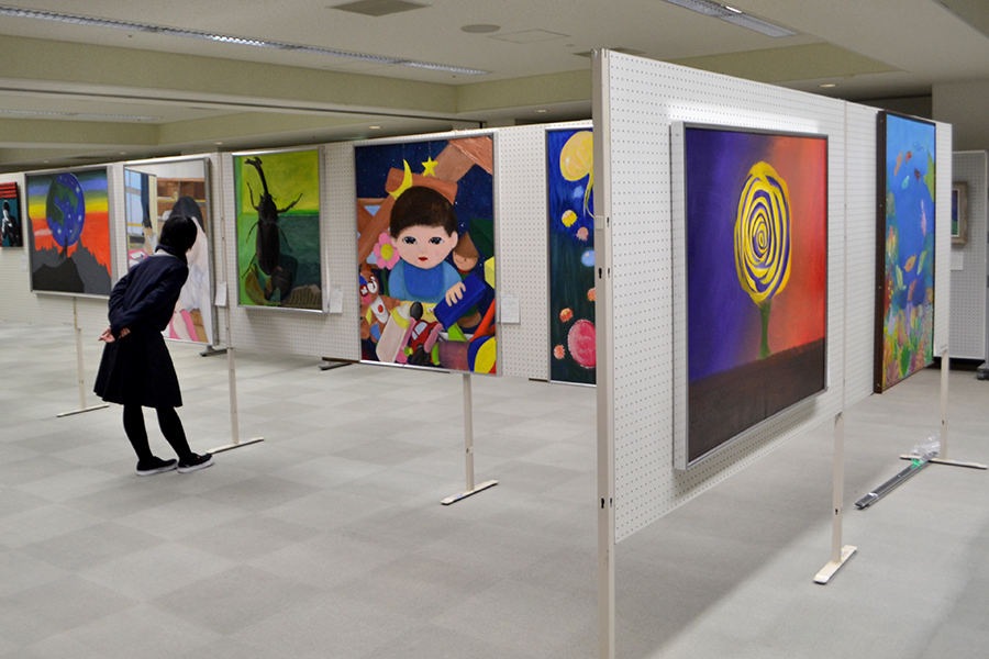 写真は、開催中の市高校美術連盟展=24日(クリックで拡大)