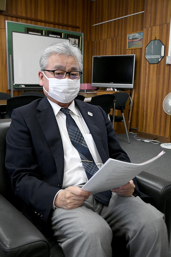 写真は、「生徒たちに思い出の場を提供したい」と話す吉田会長=8日午後(クリックで拡大)
