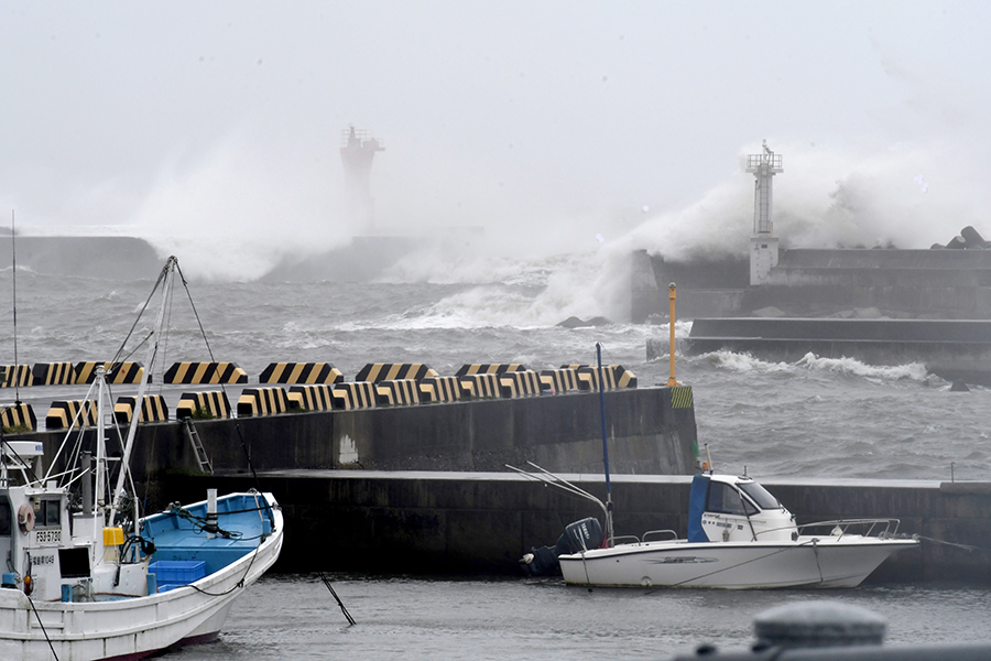 太平洋上を北上していた台風12号は24日午後3時に温帯低気圧に変わったが、関東の東海上をゆっくりと北上しており、浜通り地方では最大瞬間風速15メートルとなる強い風が吹き、海上では大しけとなっている。温帯低気圧は今後、発達しながら東北沖を北上するとみられる。