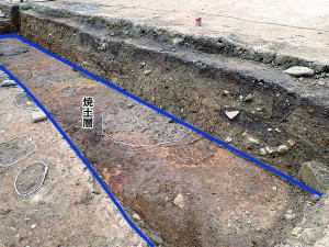 写真は、鎌倉時代のものとみられる焼土層。飯野八幡宮の遷宮の経緯を明らかにする貴重な資料として注目される(クリックで拡大)