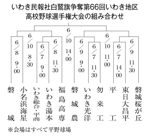 いわき民報社白鷲旗を懸け、6月7日に開幕する「第66回いわき地区高校野球選手権大会」。大会は初日に1回戦3試合、2~3日目に2回戦2試合ずつを行った後、夏の本番までちょうど1カ月前となる最終日の10日に準決勝と決勝を実施します。