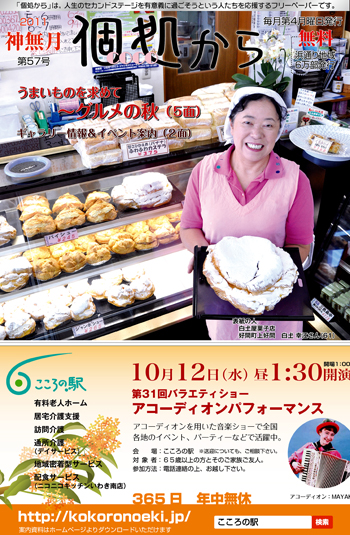 『ここ暮らす・個処から』 個処から 第57号 2011.09.19 Post この記事のタイトルとURLをコピーする PDFダウンロード PR:いわき市北部地域を中心に、児童養護施設、老人保健施設、特別養護老人ホーム、ケアハウスをはじめ、診療所とデイケア、デイサービス、居宅介護支援、訪問介護、訪問リハビリと多種多様な福祉、医療事業を展開。 個処から 第56号 前の記事 個処から 第58号 次の記事