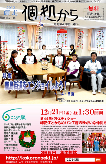 『ここ暮らす・個処から』 個処から 第71号 2012.12.29 Post この記事のタイトルとURLをコピーする PDFダウンロード PR:全国各地から厳選した「旬の魚」を吟味しすべて「生」からお造りいたしております 個処から 第70号 前の記事 個処から 第72号 次の記事