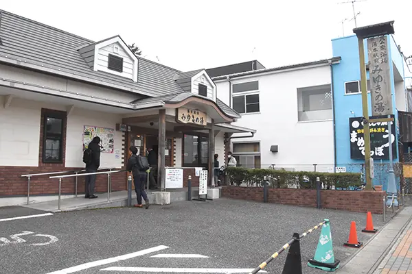 みゆきの湯は2007(平成19)年に常磐湯本町の共同浴場「東湯」の老朽化に伴い、湯本駅前の一番町商店街の通り沿いに開設された。駅から最も近い公衆浴場として親しまれてきたが、2025(令和7)年度からの湯本駅周辺土地区画整理事業に伴い、跡地を(仮称)「常磐地区交流拠点施設」の事業用地として活用するため解体が決まっている。