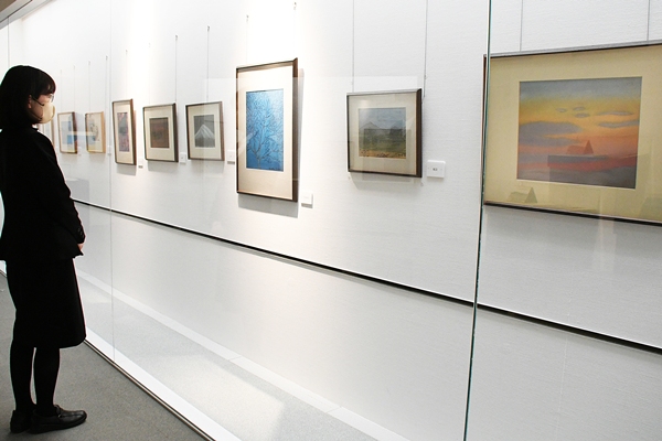 1965(昭和40)年から21回にわたり、日本各地で書画による個展を開いていたという心平の絵画、そして書、関連資料を同館や個人の所有するコレクションのなかから70数点展示している。6月8日まで。