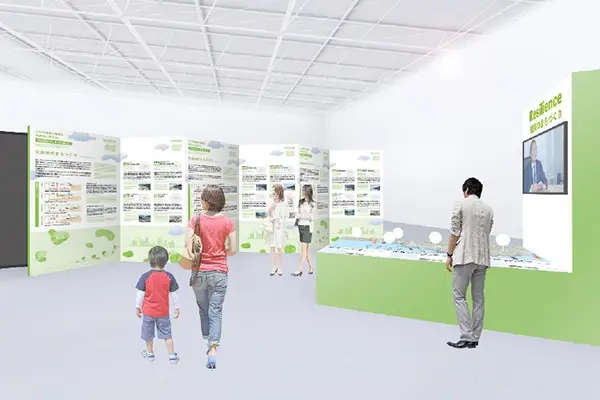 会場の2つのゾーンのうち、回復や再起を意味する「Resilience(レジリエンス)」ではモニター映像とパネル展示、関係やつながりの「Connection(コネクション)」ではVR(仮想現実)コンテンツ掲載を予定。いわき市の復旧・復興の歩みを視覚的に伝える。