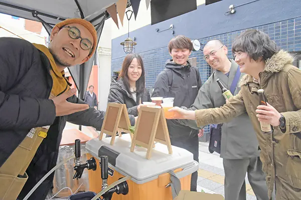 12日にはいわき駅前大通りで行われたイベントで、ホップの苦みとフルーティーな香りが特徴の「アメリカンペールエール」と、スパイシーさとスッキリとした飲み口が楽しめる「セゾン」の生ビールをお披露目した。