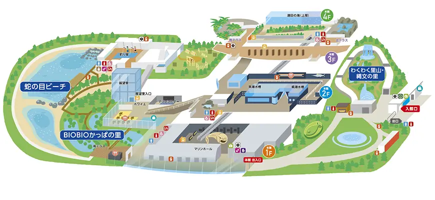 同施設は『里山の自然を体験できるエリア』として同月のオープンを目指しており、同施設から繋(つな)がる淡水ビオトープ「BIOBIOかっぱの里」と世界最大規模のタッチプール「蛇の目ビーチ」も合わせて、自然の繋がりを表現する新たな名称に変更。同館では7つの候補を挙げており、一般からの投票で決定する。