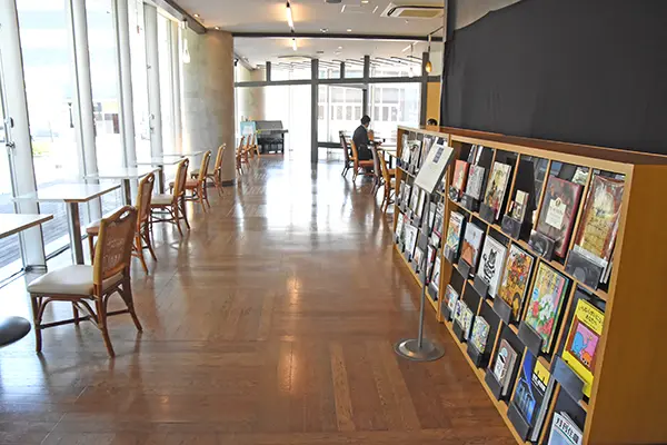 いわき芸術文化交流館「アリオス」の1階に、新たな交流スペース「アリオスクロスラウンジ」がオープンした。レストランスペースを有効活用し、100冊以上の音楽・アート関係の書架に加え、各種行事のポスターやストリートピアノが設けられており、誰もが気軽に利用できる空間を創出している。