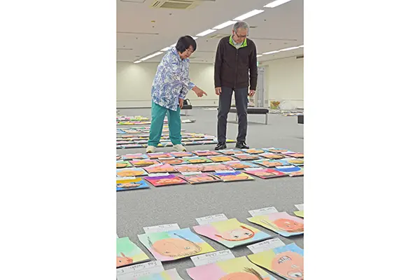 審査会場には絵の具、クレヨンで色とりどりに塗られた、個性的で優しさあふれるお母さんの似顔絵が並び、佐久間さんは1点1点をじっくりと見入ったあと、「日ごろ、母親との生活を上手くとらえている。笑ったり怒ったりする目や表情がとても楽しく表われている」と講評した。指導の先生には「1本の線や曲線を描くには、まだ難しい年齢。拙くとも子どもたちの表現力を大切にしてほしい」とアドバイスを寄せた。