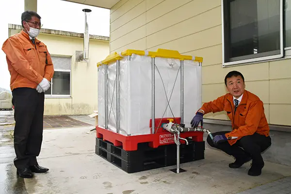 小名浜島に製造拠点を持つ、産業用包装資材の開発・販売を手掛けている堀富商工(本社・大阪府堺市、堀畑敏一代表取締役社長)は、東日本大震災での断水経験をもとに開発した組み立て式の災害用給水タンク「ホリフトウォーター」を市内の県立高校4校に順次1台ずつ寄贈する。