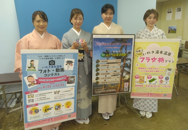 いわき湯本温泉の女将らで構成する「『フラのまち宣言』推進委員会」(小井戸文恵会長)は21日から、昨年度に引き続き「魅力アップ発信事業」を行う。本年度も宿泊者に特典が付く「フラ女将プラン」と、温泉街の風景をSNSで発信してもらう「いわき湯本温泉フォト・動画コンテスト」を展開する。