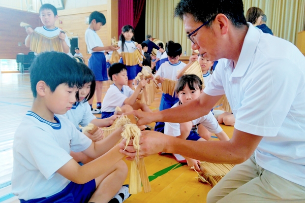 祭礼にあたっては、豊作祈願にささらを鳴らすざらっこ(稚児田楽)、豊年感謝の獅子舞などを披露。今年も海の日に合わせ、7月20、21日に祭礼が執り行われるため、市では子どもたちに向け、地元の伝統を知ってもらおうと体験授業を企画した。