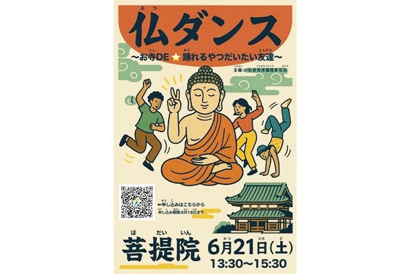 いわき光洋高3年生の総合的な探究チーム「まぢ卍(まんぢ)」による、寺とダンスを組み合わせたダンス体験イベント「仏(ぶつ)ダンス~お寺DE☆踊れるやつだいたい友達~」が21日、平字古鍛冶町の菩提院(霜村真康住職)で開かれる。参加費無料。