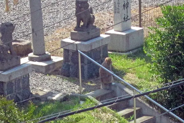 小名浜・浅間神社にサル 元高校教諭の87歳・中根さん偶然撮影「お宮参りかな」