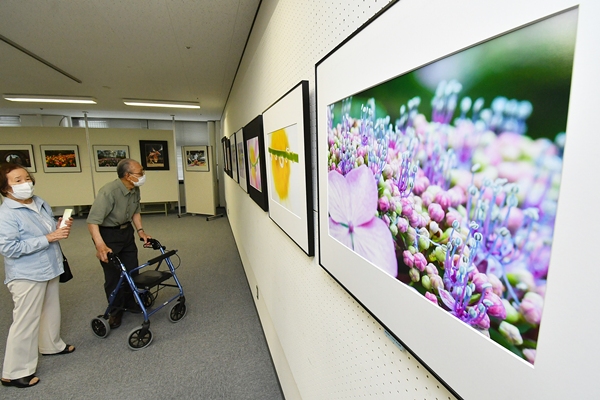 今展には受賞作品「清流のコラボレーション」をはじめ、朝陽に照らされた緑色のシーガラスを『能面』ととらえたアート色の強い作品、マクロレンズを用いて水滴に移った色鮮やかな花々、旅先のオランダやアイスランドで心に響いた情景、身近な祭事の一瞬を撮影した写真など、15人が出品した質の高い75点が並んだ。