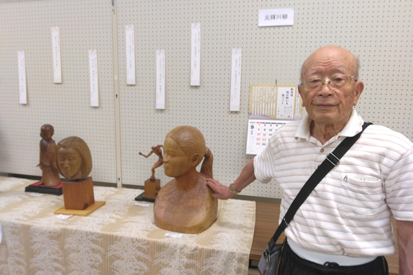 「何とかの横好きですよ」。そう穏やかな笑みを浮かべるのは、化学メーカー・クレハのOBらで構成する「呉羽松の実会」の渡辺良春さん(95)。12、13日に錦町の勿来市民会館で開かれた「会員とその家族作品展」には木彫や洋画、川柳と多彩な作品を出品した。