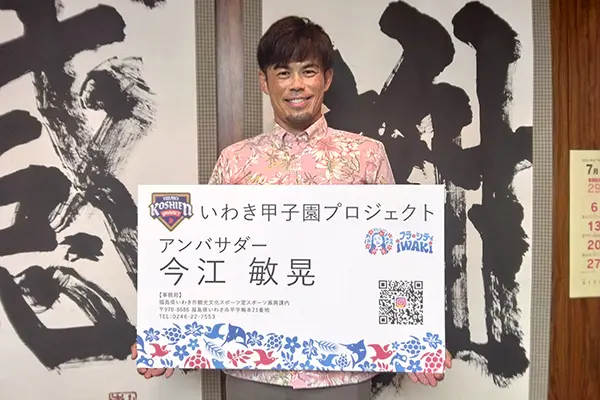 今江さんは千葉ロッテ選手時代の2011(平成23)年、東日本大震災の被災地支援の一環で来市して以来、いわき市とは継続的なかかわりを持ち、野球教室の開催に加え、プロ野球の試合に市内の野球少年・少女を招待するなど精力的に活動しており、市の取り組みへの協力を決めた。