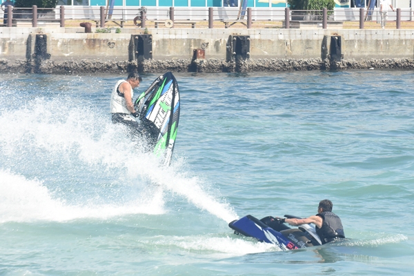 ジェットスキーのアクロバットショーにくぎ付け 27日まで「おなはま海遊祭」