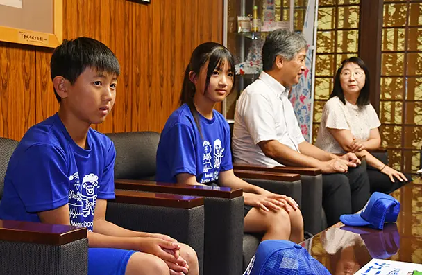 8月5日朝に出発し、羽田、宮崎空港から延岡市に入り、6、7日と宿泊交流などを行う。帰途に就くのは8日。表敬には引率する鈴木一也平四小校長と、小名浜一小養護教諭の渡辺佳子さんが同席した。