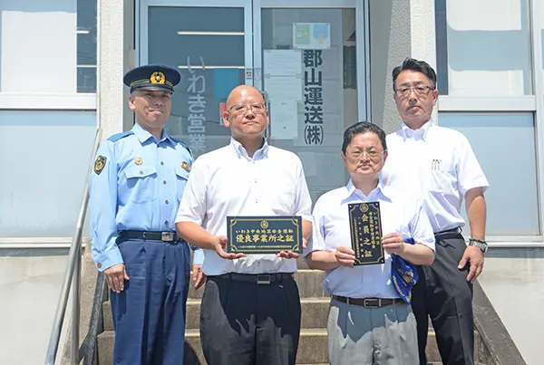 いわき中央署(阿部勝也署長)といわき中央地区安全運転管理者協会(山口剛史会長)は24日、好間町北好間の郡山運送いわき営業所(竹内誠所長)に対し、同協会の会員プレートと優良事業所プレートを贈った。