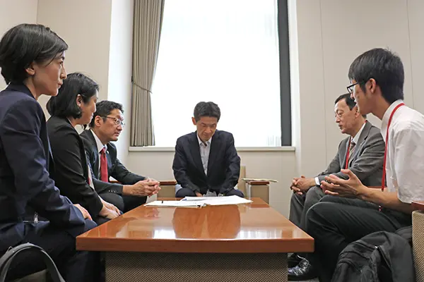 河合審議官との面会は一部非公開で、内田市長、小野会長が要望書を手渡した。市登録防災士の緑川琴江さん(45)、黒沢彩さん(38)、鈴木仁太さん(16)=磐城高・1年=が同席した。