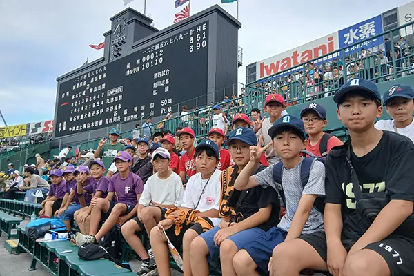 甲子園では7日の第3試合(津田学園〈三重〉―叡明〈埼玉〉)、8日の第1試合(花巻東〈岩手〉―智辯和歌山〈和歌山〉)、第2試合(東洋大姫路〈兵庫〉―済美〈愛媛〉)を観戦。子どもたちは高いレベルでのプレーに目を輝かせたほか、自分も聖地で活躍する日を夢見ていた。