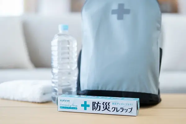 いわき市錦町に主力工場を置く化学メーカー・クレハは「防災クレラップ」の販売を始めた。背景には、東日本大震災や能登半島地震の被災地から「ラップが役立った」という声が寄せられたことにある。