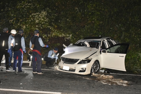 Aさんは打撲などの軽傷だったが、Bさんは全身を強く打ち意識不明のまま市内の病院に運ばれたものの、多発性外傷により約2時間半後に死亡した。Aさんの車には30代の女性が同乗しており、打撲などの軽傷だった。