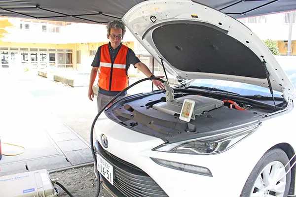 いわき市、東北大災害研 福祉避難所の環境対策考える 燃料電池車から給電実証