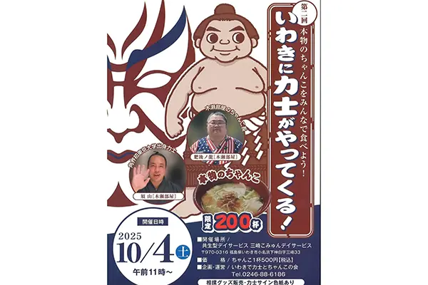 イベントは地元有志で構成する「いわきで力士とちゃんこの会」が主催し、今年6月に続いて2回目。広く市民に大相撲の魅力を知ってもらうとともに、地域活性化を目的に行っている。