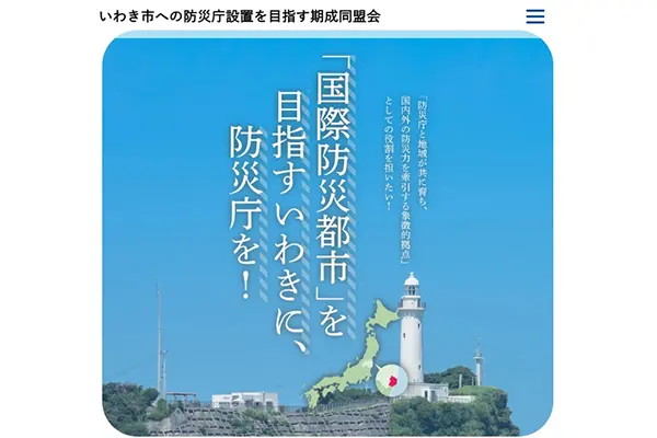 防災庁誘致に向けて いわき市 官民連携の期成同盟会ホームページ公開