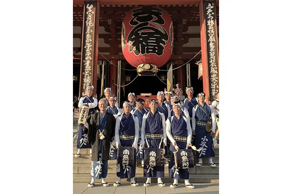 (写真:浅草寺で記念撮影に応じる小谷作青年会)