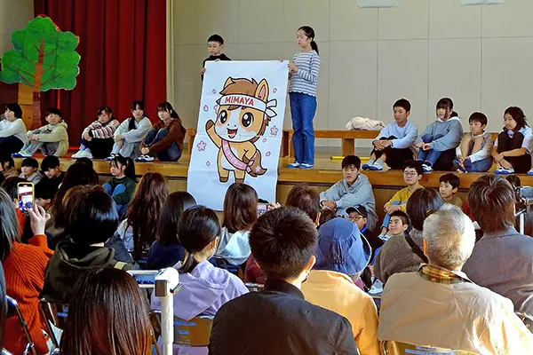 母校への親しみを込め、児童や保護者たちだけでなく地域にも愛されるようなキャラクターをと、6年生50人が中心となり、ほかの学年の児童『みまやっ子』たちと保護者にアンケートを取り、生成AIを活用して生み出したという。