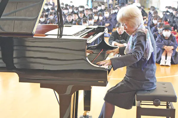 愛知県立芸大名誉教授・ピアニスト永野美佐子さん 母校の平一中にピアノ寄贈