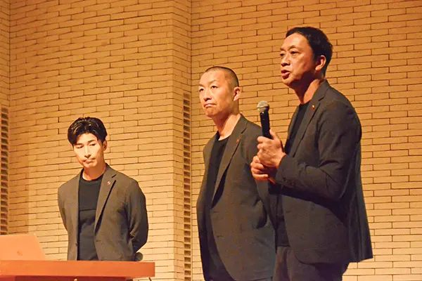 (写真:登壇した大倉社長、田村監督、川﨑シニアマネージャー=右から)