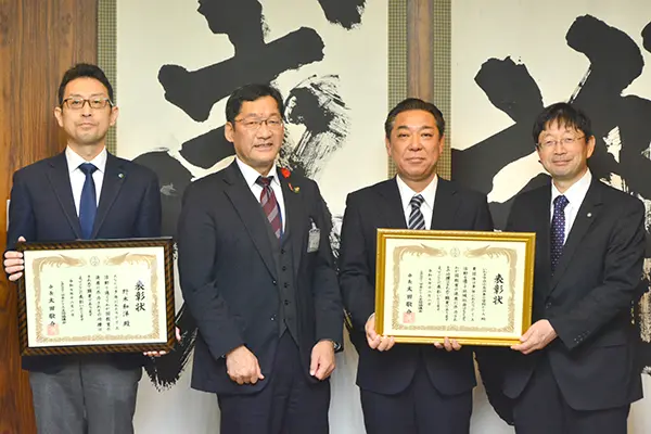 小名浜東小PTAと、市PTA連絡協議会の野木和洋会長が「日本PTA全国協議会長表彰」を受けた。同校の仙坂宜央PTA会長、地引修校長と野木会長は23日、市役所本庁舎を訪れ、内田市長に受賞を報告した。