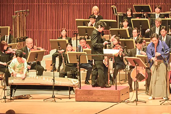 (写真:箏、尺八とオーケストラが共演した演奏会)