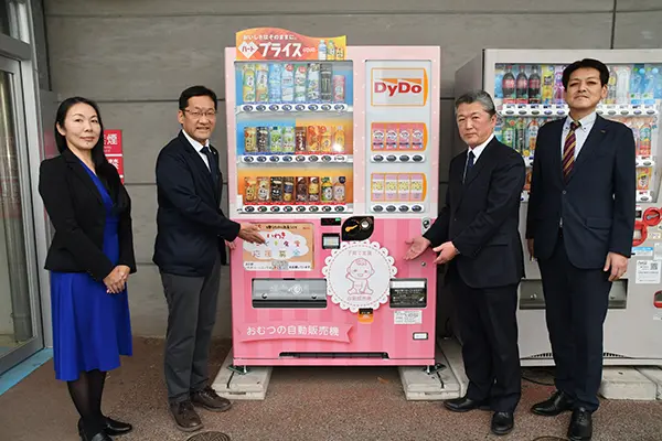 こども食堂応援自販機とおむつ自販機の機能を合わせた自販機の設置は、いわき・ら・ら・ミュウが東北初となる。