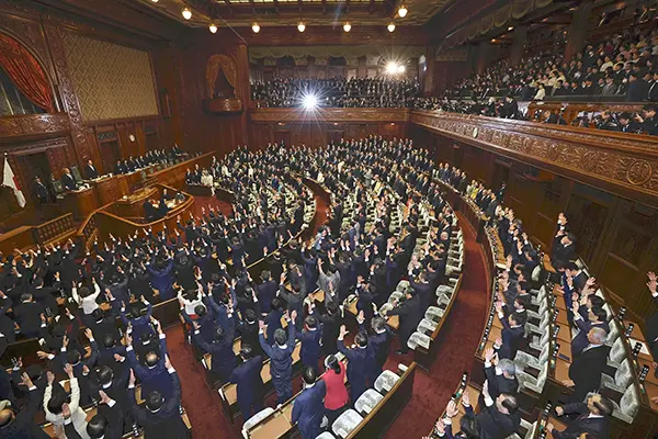 (写真:衆院が解散され、万歳する前議員ら=23日午後1時4分、国会で 高橋美帆撮影/読売新聞社配信)
