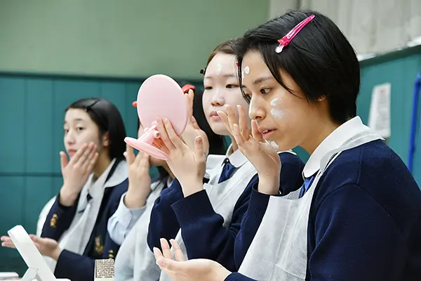 実践的なメイク術など学ぶ 磐城一高「礼法」授業の集大成として