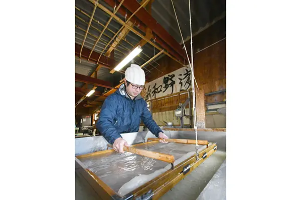 高嶋さんは瀬谷さんら歴代職人の志を尊重し、『本物』の遠野和紙を後世に伝えていくためにも、1点吊りを復活させた。