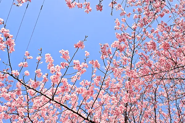 佐糠町・常磐共同火力勿来発電所のグラウンドで5日、早咲きで知られる「河津桜」が満開を迎えた。同日に多くの木で8分咲き以上となったことが確認され、同発電所で満開宣言を行った。