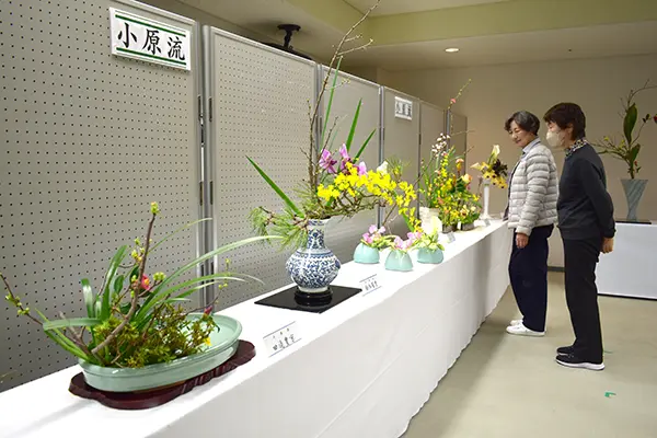 いわき市華道連合会 恒例の「諸流いけばな展」8日まで・市生涯学習プラザ