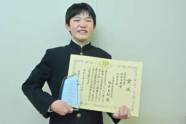 震災15年 防災アイデアまとめて環境大臣賞 中央台北中・白土大翔さん