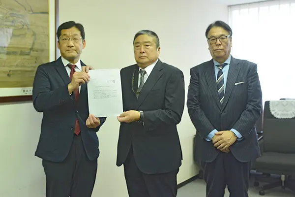 (写真:内田市長に緊急要望を行った県石油業協同組合)