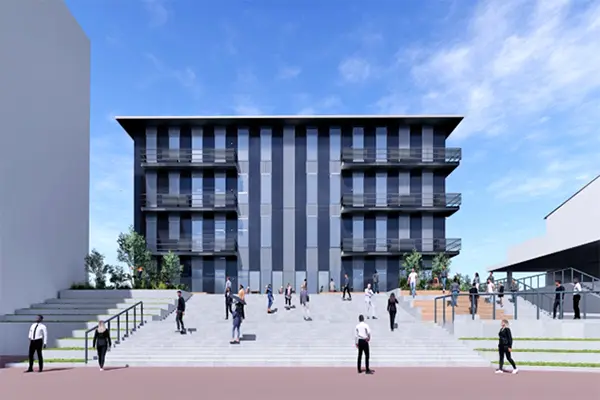 デジタル技術の進展を踏まえ、将来にわたっての産業のあり方を見据え、地域のニーズに応えて活躍できる人材を育成していく。完成は来年5月の見込み。