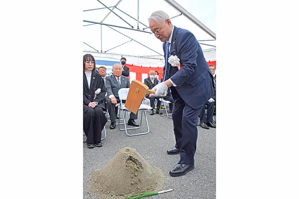入学定員は80人。デジタル創造学科(仮称)棟は鉄骨造り4階建て(延べ床面積は約2千平方㍍)。新築工事起工式では神事が執り行われ、同大を運営する昌平黌の緑川浩司理事長らが鍬入れなどに臨んだ。