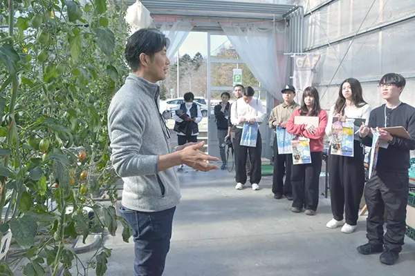 初日は沿岸部でサイクリングを楽しんだほか、四倉町でトマト生産などを手がける「ワンダーファーム」に赴き、元木寛代表取締役から農業の取り巻く環境について講話を受けた。